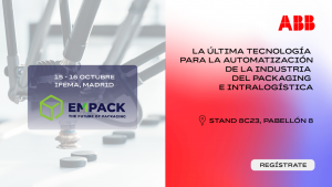 • ABB te espera los días 15 y 16 de octubre en su stand nº 8B10 para enseñarte las últimas novedades en robótica colaborativa, industrial y delta, así como sus soluciones digitales, para los sectores del packaging e intralogística.