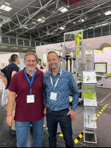 La feria propició el reencuentro de numerosos profesionales del sector de la robótica En la fotografía se encuentran presentes Ignacio Secades y Jyrki Latokartano, quienes ostentan la calidad de miembros de la junta directiva de la IARA durante el desarrollo de la feria `Automatica´ 2023 en Múnich.