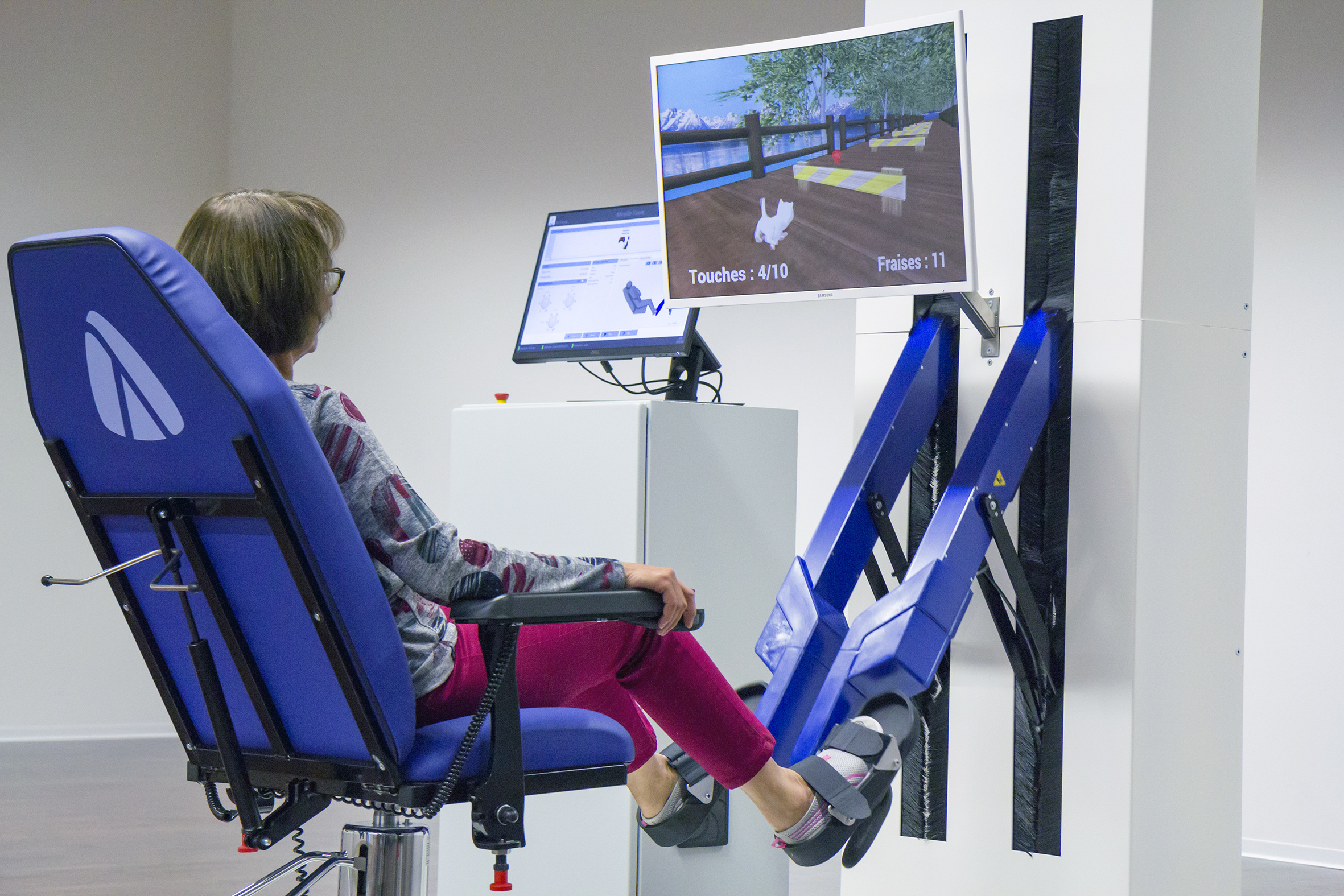 SCHUNK ofrece una gran asistencia, por ejemplo, con la tecnología de sensores en quirófanos mediante el uso de sistemas de robots sensibles. Otro ejemplo son los sistemas de asistencia para la rehabilitación de pacientes. Por ejemplo, tras un derrame cerebral, los robots pueden ayudar a entrenar el aparato locomotor. En este caso, los sensores FTN-AXIA80 de SCHUNK en los pedales del sistema de entrenamiento se hacen cargo de la medición precisa de fuerza/par y reaccionan a las influencias más pequeñas del paciente. Miden la fuerza que usa el paciente para accionar los pedales y comunican los resultados al robot, haciendo posible programas de rehabilitación interactivos.